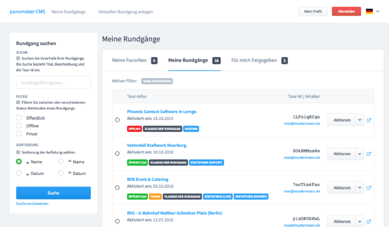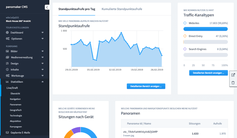 Unsere Statistiken helfen dir dabei, mehr über die Besucher deiner Rundgänge zu erfahren.