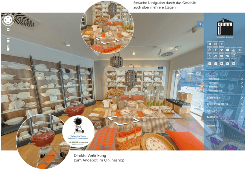 Die intuitive Navigation macht es ihren Kunden, selbst mit wenig Weberfahrung, ganz einfach, sich durch ihren Rundgang zu bewegen.